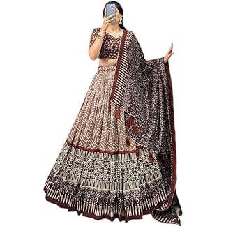PRACHARAN Women’s Cotton Navratri Lehenga with Gotta Patti Work with Unstitched Blouse (8 meter flare lehenga)