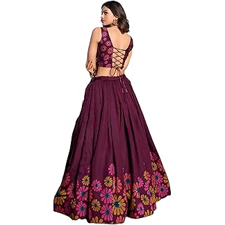 Snazzy Stitch Woman’s perfectly Navratri Collection Tussar Silk Lehenga Choli Flower Print with Foil Work