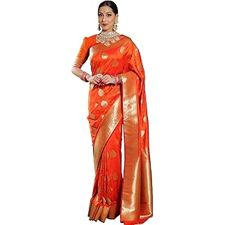 Women’s Glory Womens Kanjivaram Banarasi Silk Saree Blend Woven Zari with Jacquard Woven Unstitched Blouse Piece.