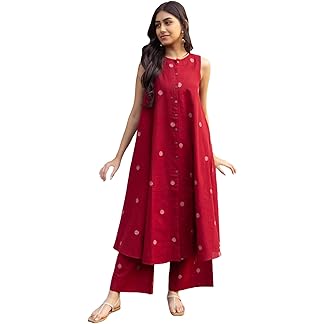 ANNI DESIGNER Women’s Cotton Printed Maroon Hand-Print Kurta Set|A-Line Kurta With Palazzo|Co-Ord Set|Ethnic & Stylish Two Piece Dress|Casual & Office Wear Coord Set