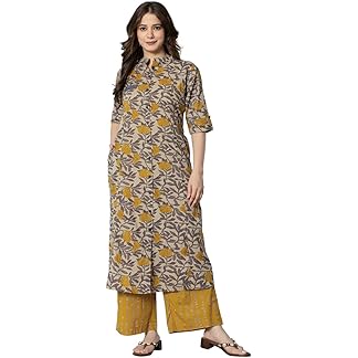 GoSriKi Women’s Rayon Viscose Straight Printed Kurta with Palazzo