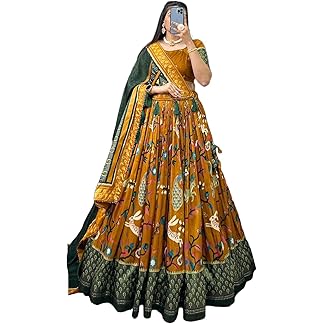 Snazzy Stitch Women’s Trending Designeer Tussar Silk Lehenga Choli Print with Foil Work With Unstitched Blouse Patola Print Adorned with Foil Work For Navrati || Wedding