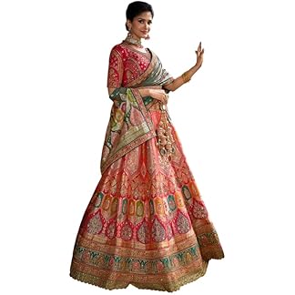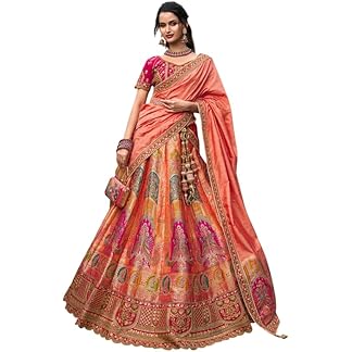 Women’s Astonishing Peach Zari Weaving Banarasi Silk Wedding Lehenga Choli