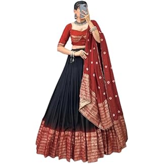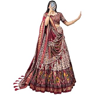 Sarathybiz Woman’s perfectly Navratri Collection Tussar Silk Lehenga Choli Patola Print with Foil Work