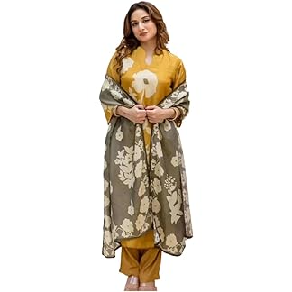 ANNI DESIGNER Women’s Cotton Kurta Pant Dupatta Set | Mustard Yellow Kurta Set for Women | Turmeric Yellow 3-Piece Suit Set | Festival Ethnic Dress