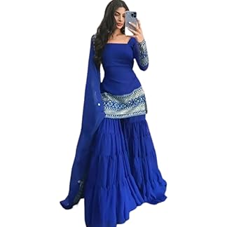 Royal Blue Embellished Sahara with Square Neck Top, sharara and Dupatta, Traditional Indian Wear