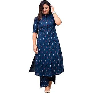 Kimayra Women’s Cotton Flared Printed Embroidered A-Line RoundNeck Kurta Suit Set
