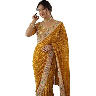Satrani Women’s Georgette Bandhani Printed Festive Saree with Unstitched Blouse Piece