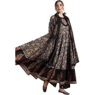 ANNI DESIGNER Women’s Rayon Viscose Anarkali Printed Kurta with Pant & Dupatta