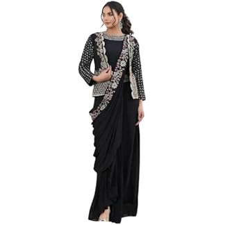 infabzon Ready To Wear Western Drape Lehenga Saree Dupppata Atteched Koti Set For Women Chinon Silk Fabric On Multi Color Embrodery Coding Work Fully Stitched