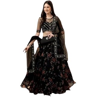MIGORA Women Heavy Net Semi-Stiched Embrodary Lehenga Choli with Dupatta Ready to Wear Bridal Wedding Lehenga Choli for Womens Garba