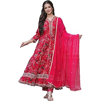 Alvami Women Anarkali Kurta and Pant Set with Dupatta