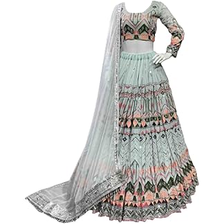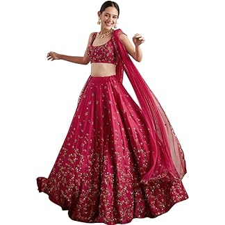 WeaRSquad Women’s Art Silk Lehenga Choli with Sequins Embroidery Work & Unstitched Blouse – Parti Wear Georgette Dupatta for Weddings and Special Occasions