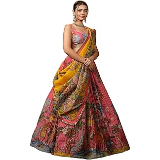 KrishuEthnics Peachish Kalamkari Print Chinon Silk Lehenga Choli