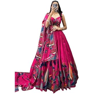 SD Collection Rani Pink Floral Lehenga Choli with Foil Print & Gotta Patti Dupatta