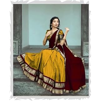 VIMASASHI Women Cotton Blend Semi Stitched Gold Yellow Color South Indian Style Semi-Stich Traditional Lehenga Choli Half Saree, 41