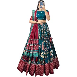 Women’s Tussar Silk Lehenga Choli Patola Print with Foil Work With Blouse Solid