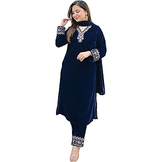 KRISHNA APPARELS-womens kurta set with dupatta/womens kurta set with dupatta & Pent Velvet Embroidered full stitched