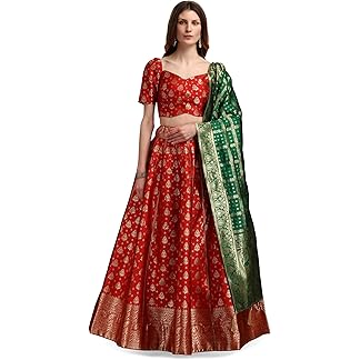 piludi Women’s Embroidered Vichitra Silk Lehenga Choli Dupatta Set Semi-Stitched Blouse and Fit & Flare Style