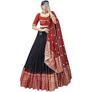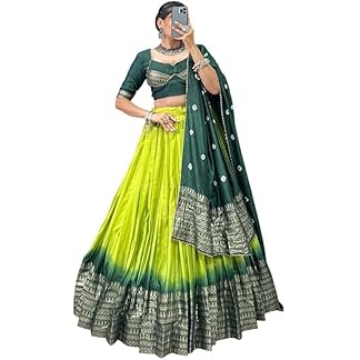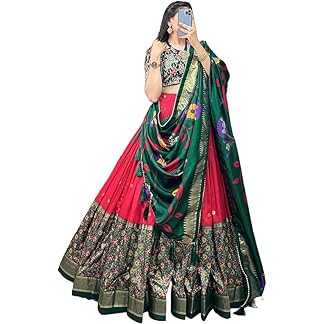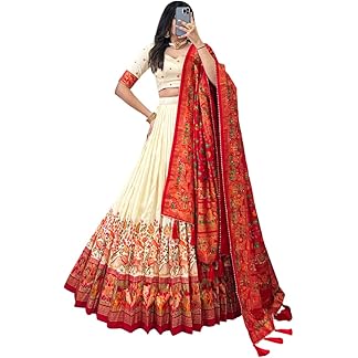 HALFSLIVE Women’s Trending Designeer Tussar Silk Lehenga Choli Print with Foil Work With Unstitched Blouse Patola Print Adorned with Foil Work For Navrati || Wedding