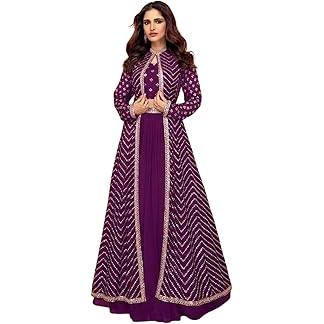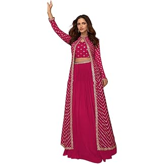 Kaswya Women’s Georgette Sequin Embroidery Crop Top Lehenga with Shrug Suit Set