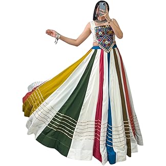 Dharm Choice Women’s Pure Rayon Cotton Real Mirror Work Gamthi Design Lehenga Choli With Blouse Peice | Navratri chaniya choli | Navratri lehenga for women