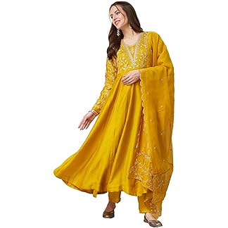 Libas Womens Woven Design Silk Blend Straight Kurta With Trousers and Dupatta