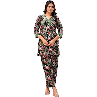 KALPHEM Women’s Rayon Co-Ord Set, Two Piece Top and Pant, Casual Designer Print, Relaxed Fit Casual Co Ords Women Wear Fashionable for Party