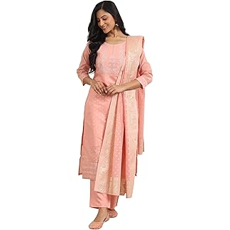 INDO ERA Women’s Pure Cotton Embroidered Straight Kurta Pant With Dupatta Set