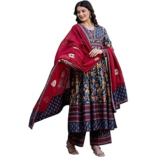 Pistaa’s Women’s Pure Cotton Anarkali Floral Printed Kurta with Palazzo & Dupatta Set