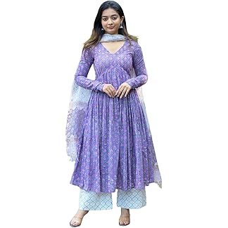 GoSriKi Women’s Cotton Kurta Palazzo Set | A-Line Flared Kurta Set for Women | Bandhani Block Print Suit Set | Kurta Sets for Woman
