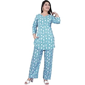 Gudwear Women Co-ord Set, V-Neck Short Kurti With Pant, Kurta Set For Women
