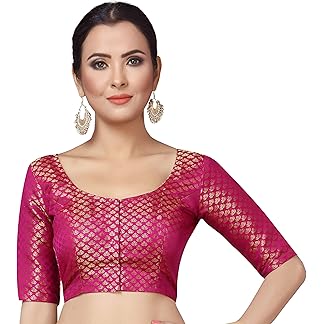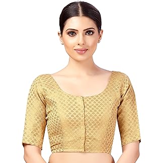 Studio Shringaar Women’s Brocade Elbow Length Sleeves Saree Blouse