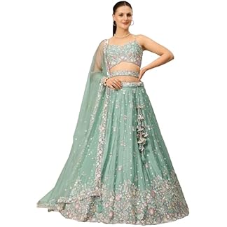 ZAALIMA FASHION WITH Z LOGO Amazon Brand Women`s Net Embroidered Silver Work Semi Stitched lehenga Choli