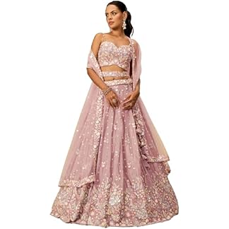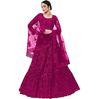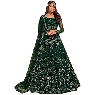 TRENDMALLS Women’s Net Embroidery Salwar Suit Set Kurta Lehenga with Dupatta Kurta Set for Women