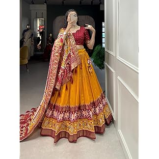 Women,s Tussar Silk With Patola And Foil Print Lehenga choli Set (YELLOW)