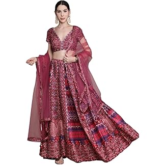Fast Fashions Women’s Stylish Satin Semi-Stitched Multi Design Lehenga Choli With Dupatta (Free Size_Maroon)