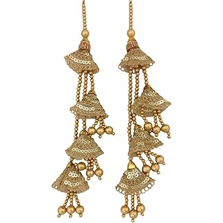 Shoppingover Golden latkan for Lehenga Heavy and Long Hand Made Blouse Tassels (Pack of 2 Latkans)