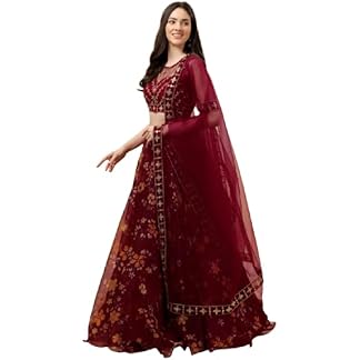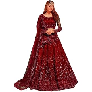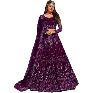 ZAALIMA FASHION WITH Z LOGO Amazon Brand-Women’s Net Embroidred Lehenga Choli And Dupatta Set (Free Size)