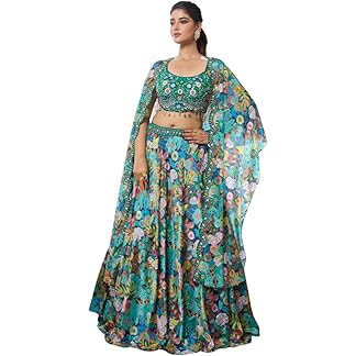 Suppar Sleave Women’s Ethnic Wear Floral Digital Printed Organza zari Sequin Work Semi-Stitched Lehenga Choli With Dupatta