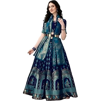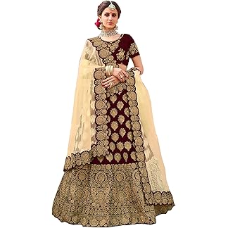 SWAMI STUDIO Trendy Indian Style Wedding Banarasi Lehenga Choli For Women, choli with Unstitched Blouse (AK2)