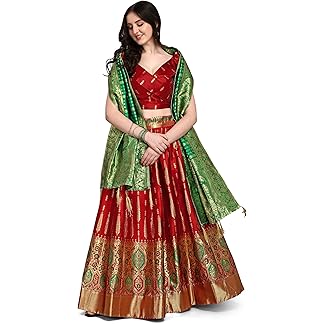PURVAJA Women’s Faux Silk Semi-Stitched Lehenga Choli
