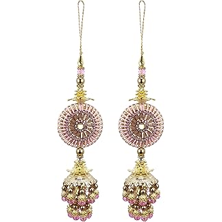 RAADHE CREATION Fancy Golden Hand Made Work Plastic and Fabric Ethnic Lehenga Hanging Tassel Latkan 2 pic (Pink)