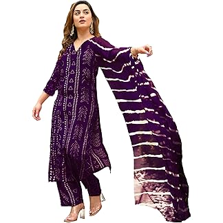 ANNI DESIGNER Women’s Rayon Blend Straight Bandhej Printed Kurta with Pant & Dupatta