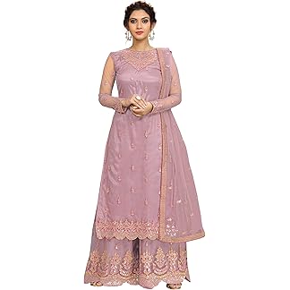 TRENDMALLS Women’s Net Embroidery Salwar Suit Kurta Sharara Set with Dupatta