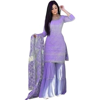 TRENDMALLS Women’s Net Embroidery Salwar Suit Kurta Sharara Set with Dupatta