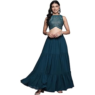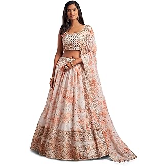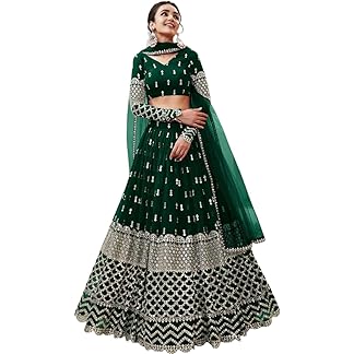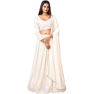 Zeel Clothing Women’s Chikankari Sequins Embroidered Georgette Semi-Stitched Lehenga Choli With Dupatta (5050-Wedding-Girlish-Latest-New)