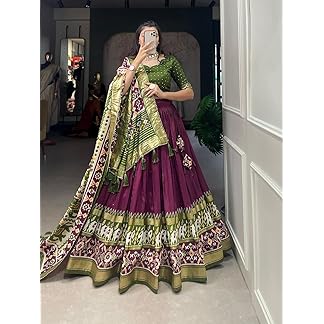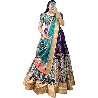 Women’s Ethnic Silk Lehenga Choli Set with Unstitched Blouse, for Weddings and Festivals
