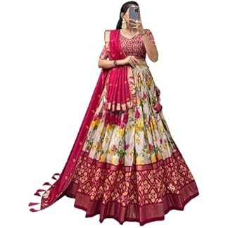 Womens’ Wear Tussar Silk With Patola Printed Lehenga Choli Patola Print With Foil Work Chaniya Choli