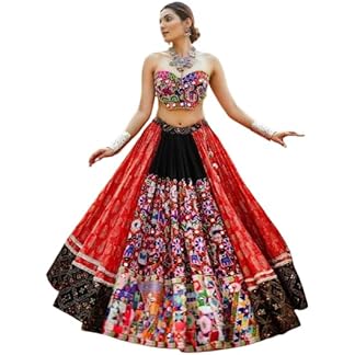 Red cotton mirror work navratri lehenga chaniya choli